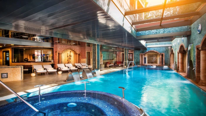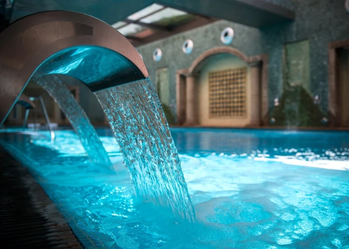 - Piscina spa: cascades Niàgara, assortidors d'aigua, assortidors de coll de cigne, llits aquàtics amb bombolles, bancs lumbars...